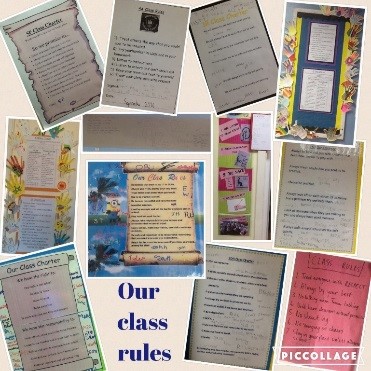 Class Charter - At the start of every school year each class decide on a list of rules for their class, these are then typed up, every child signs it and they are put on display in the classroom. By doing this every pupil is agreeing to follow them.